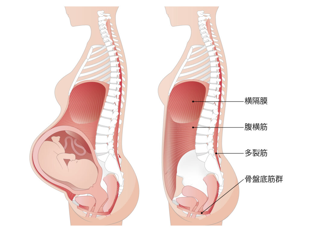 → お腹や背中の筋肉と連動して、体を支える働きもしている。